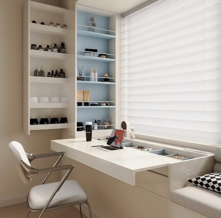 现在很流行这样的设计,那就是将飘窗简单改造一下,当做是化妆台去收纳,能利用好空间,用着更顺心。